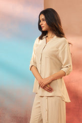 Sand Dusk is neutral sophistication redefined — a beige coord set designed with clean button detailing that adds just the right edge. Its Style 05 silhouette is versatile enough to style closed for a tailored look or open for relaxed charm. A timeless wardrobe essential with effortless modernity.