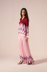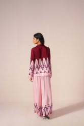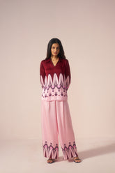 Gulnaar is where softness meets strength. A delicate pink canvas, enlivened by bold maroon motifs, creates a dialogue of contrast. This coord Set embodies balance — feminine grace with fearless confidence, subtle beauty with striking presence.